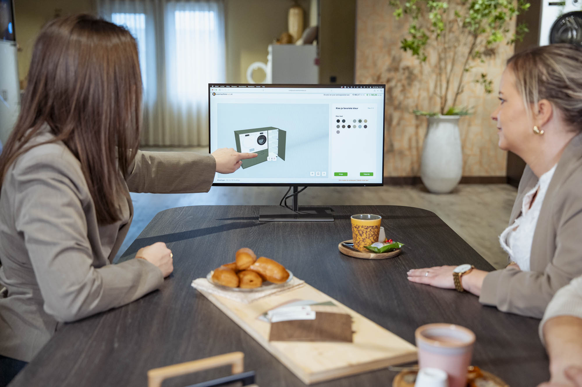 – Achter apparatenkasten is standaard 5 cm vrije ruimte beschikbaar. Steekt bijvoorbeeld een kraan verder uit dan 5 cm? Dan adviseren wij om op die plek een kastdeel te plaatsen in plaats van een apparaat.