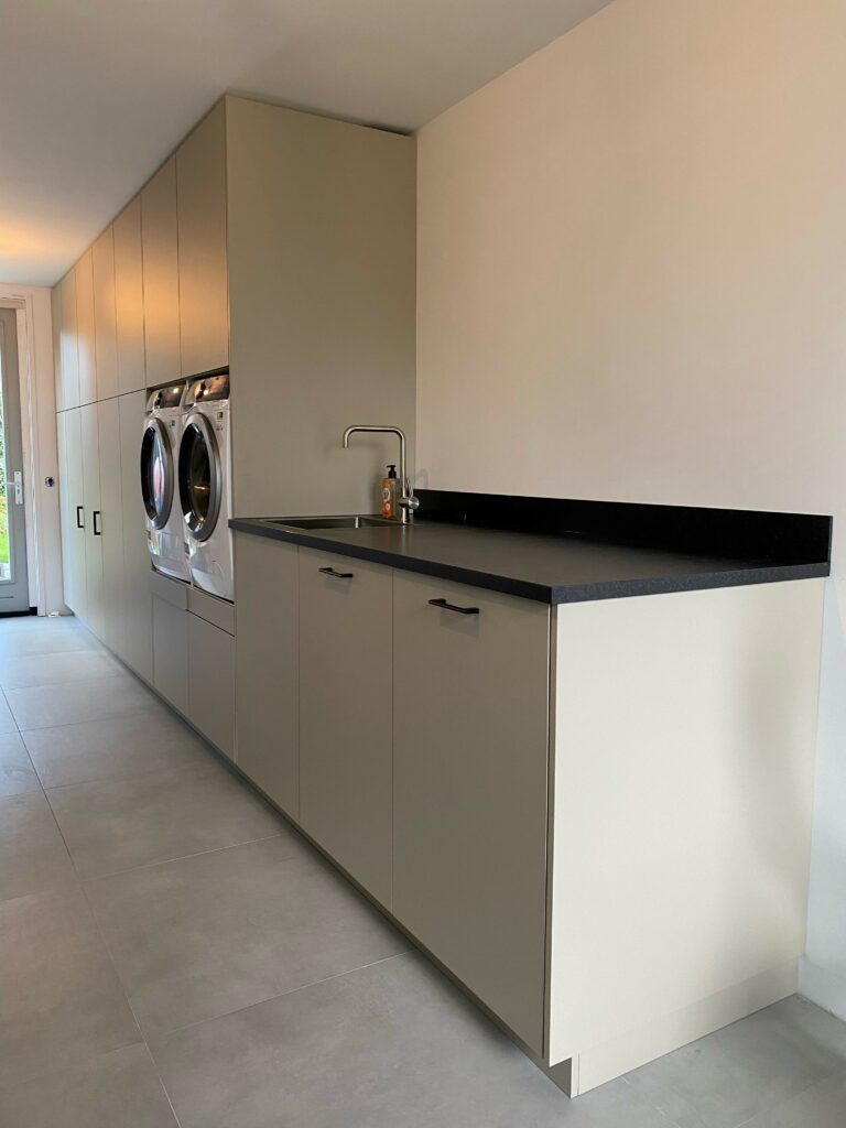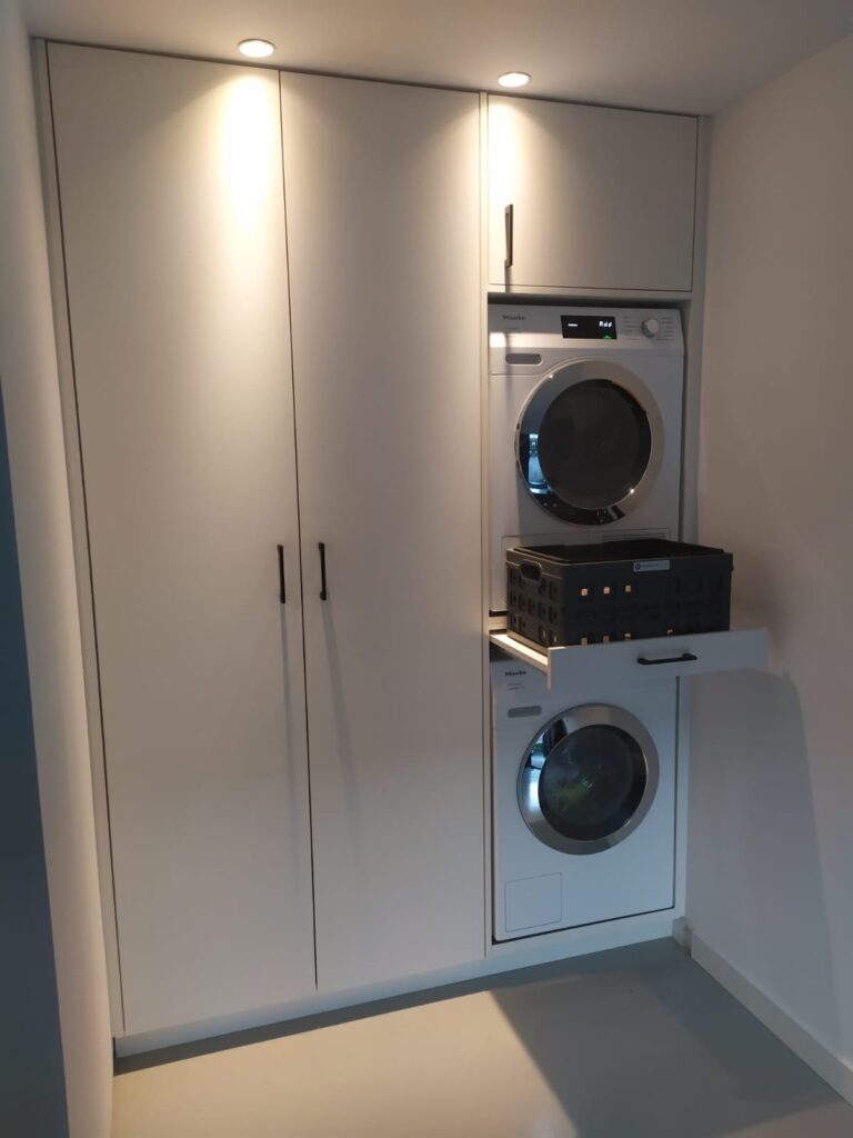 Met onze configurator kun je niet alleen kiezen uit standaardontwerpen, maar ook de afmetingen hiervan eenvoudig aanpassen. Of je nu een smallere, bredere, hogere of lagere kast nodig hebt, met onze configurator pas je jouw kast precies aan op de ruimte. Zo creëer je een kast die niet alleen functioneel is, maar ook naadloos in jouw wasruimte past.
