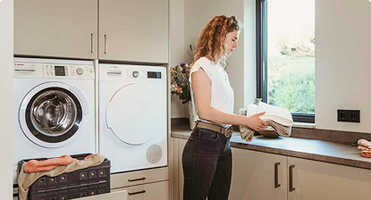 Pak even je rolmaat. Meet de breedte, hoogte en diepte van jouw wasruimte. Dan weten we zeker dat jouw wasmachinekast straks perfect past — zonder gedoe achteraf.