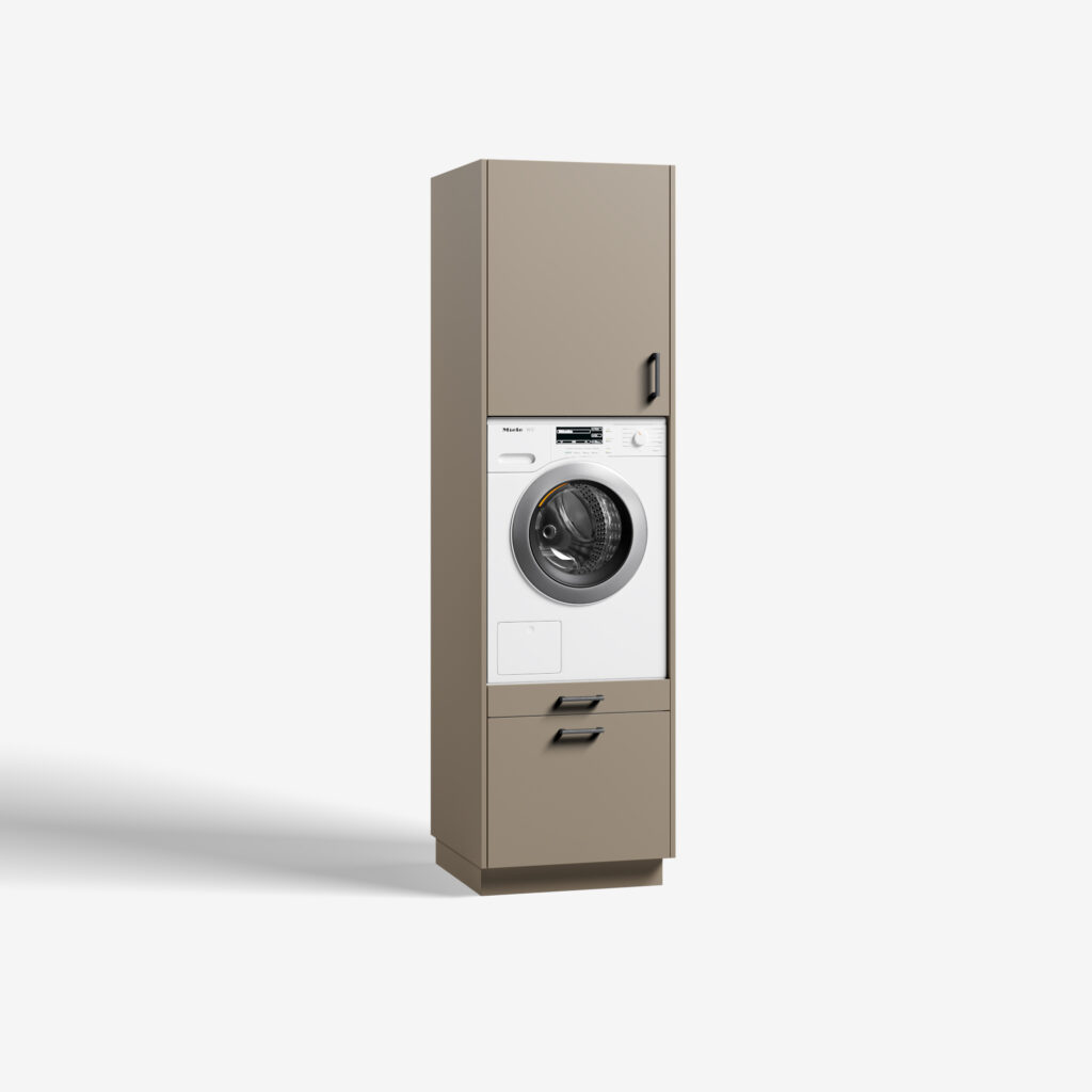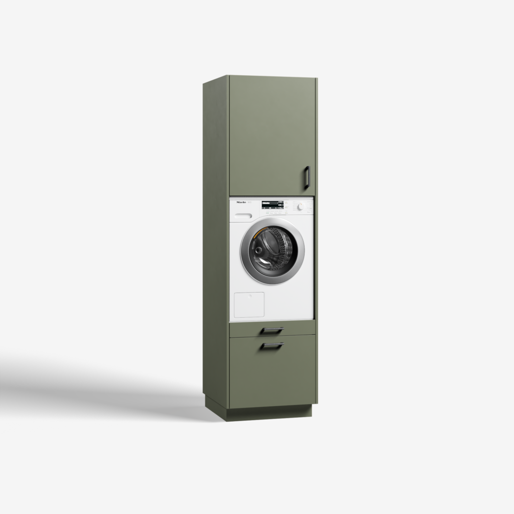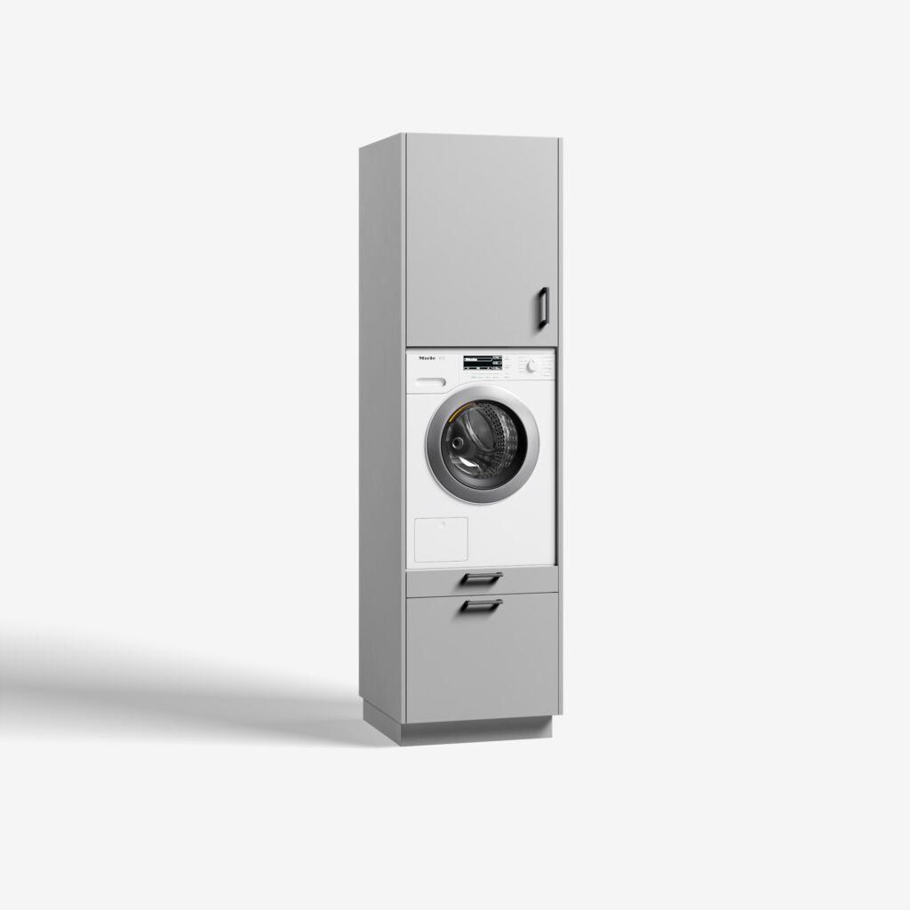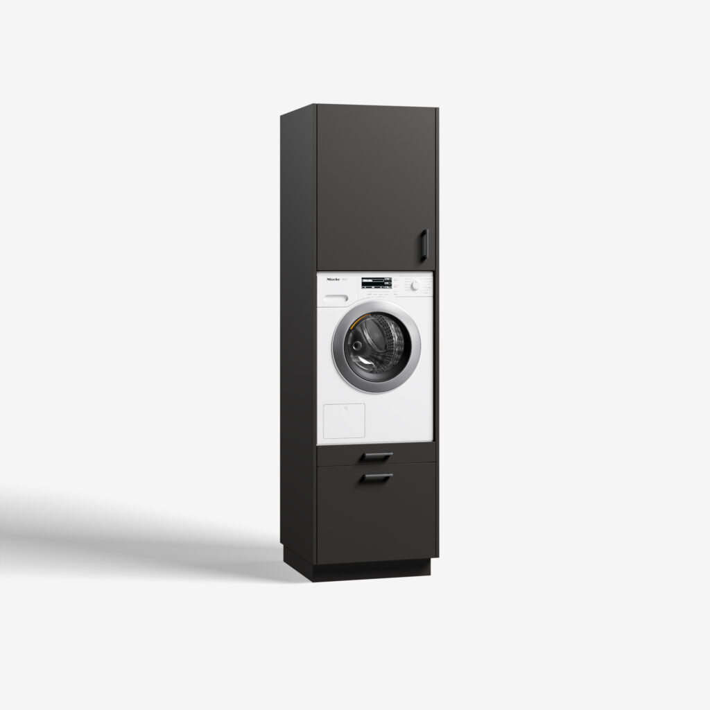 Wasmachinekast Solo is het eerste model van Wasmachinekast.nl. En nog altijd een van de populairste. Logisch, want de Solo past op elk plekje in huis. De Solo is een stevige ombouw voor één was- of droogmachine. Prettig op een ergonomische hoogte geplaatst met een handig uitschuifbaar plateau voor je volle (of lege) wasmand. De basis wordt gevormd door de volledig uitrekbare lade, die een berg ruimte biedt aan bijvoorbeeld wasmiddel en andere toebehoren. Net als het plateau schuift ook de lade moeiteloos en stil open en dicht. Opbergruimte, luxe en wasgemak komen zo samen in de Solo. Binnen het ultrastevige frame van de wasmachinekast staat de wasmachine of -droger op een geluiddempende antislipmat. Het ventilatierooster in dit designmeubel zit in het bovenblad, zodat de automaat ook in de kleinste wasruimtes zijn warmte kwijt kan. Kies voor Metallic Black, Olive Grey of een van de andere stijlvolle kleuren, en combineer dit met een van de luxe handgrepen voor jouw ultieme wasgemak in stijl. Met de verstelbare poten ben je ervan verzekerd dat jouw wasmachinekast Solo altijd waterpas op z’n plek staat ongeacht de ondergrond. Achter de demontabele plint zijn losse snoeren verleden tijd. Wasmachinekast.nl biedt op elke kast, standaardmodel of maatwerk, 5 jaar volledige garantie. Ook voor jouw Solo is de robuuste kwaliteit gegarandeerd. Kies jij voor zelf monteren, wordt je wasmachine meubel in praktische kant-en-klare delen aan huis geleverd en zet je ‘m zelf eenvoudig in elkaar. Kies je voor ‘inclusief montage’ dan bezorgen wij jouw wasmeubel aan huis en monteren onze servicemedewerkers je kast op locatie, inclusief installatie van wasmachine of droger. De Solo biedt een opgeruimde plek voor een wasmachine of droger. Wasmachinekast Two Pair biedt het dubbele van de Solo. Of bekijk de andere kasten hier.
