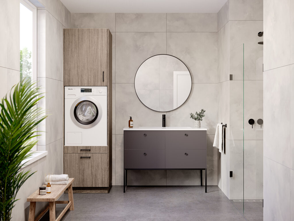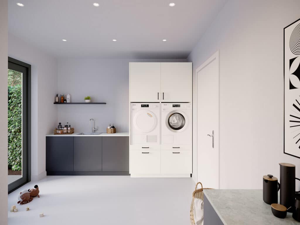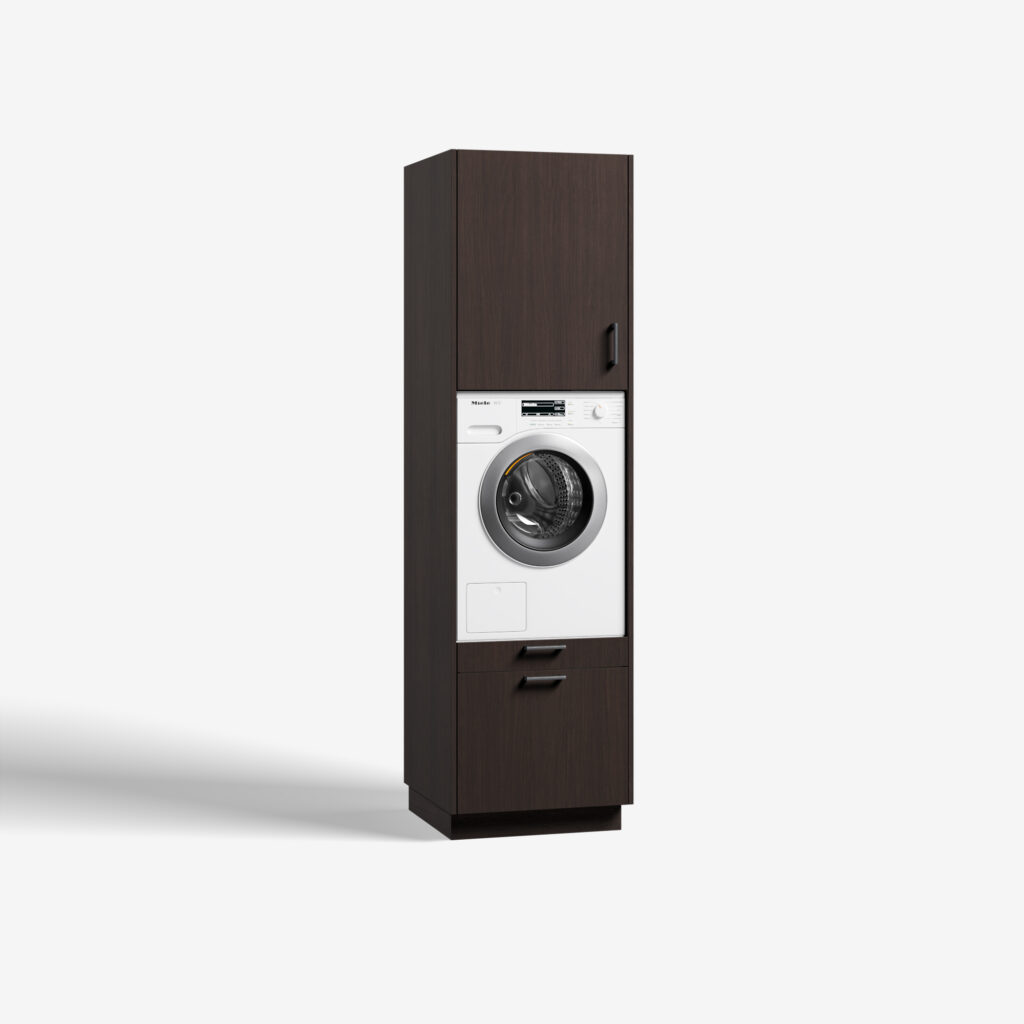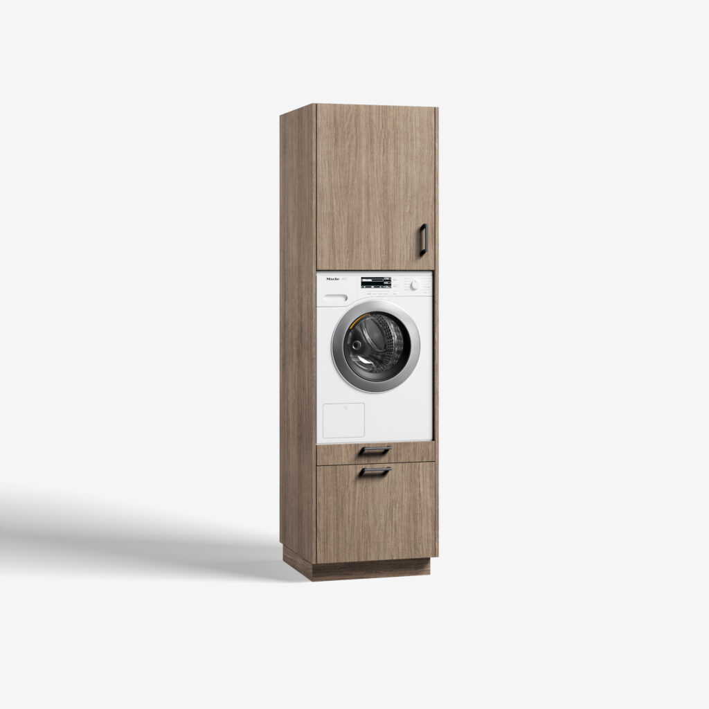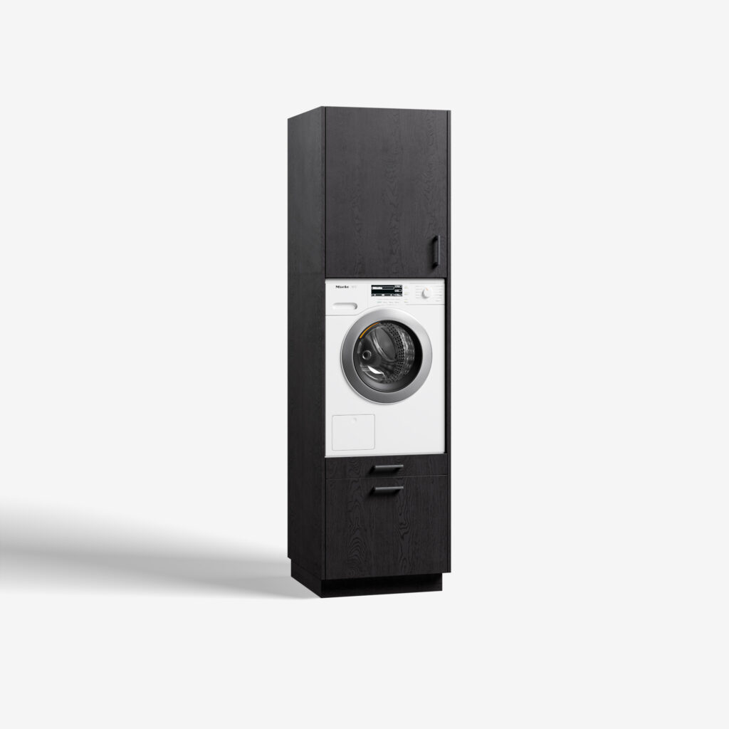 Wasmachinekast Solo is het eerste model van Wasmachinekast.nl. En nog altijd een van de populairste. Logisch, want de Solo past op elk plekje in huis. De Solo is een stevige ombouw voor één was- of droogmachine. Prettig op een ergonomische hoogte geplaatst met een handig uitschuifbaar plateau voor je volle (of lege) wasmand. De basis wordt gevormd door de volledig uitrekbare lade, die een berg ruimte biedt aan bijvoorbeeld wasmiddel en andere toebehoren. Net als het plateau schuift ook de lade moeiteloos en stil open en dicht. Opbergruimte, luxe en wasgemak komen zo samen in de Solo. Binnen het ultrastevige frame van de wasmachinekast staat de wasmachine of -droger op een geluiddempende antislipmat. Het ventilatierooster in dit designmeubel zit in het bovenblad, zodat de automaat ook in de kleinste wasruimtes zijn warmte kwijt kan. Kies voor Metallic Black, Olive Grey of een van de andere stijlvolle kleuren, en combineer dit met een van de luxe handgrepen voor jouw ultieme wasgemak in stijl. Met de verstelbare poten ben je ervan verzekerd dat jouw wasmachinekast Solo altijd waterpas op z’n plek staat ongeacht de ondergrond. Achter de demontabele plint zijn losse snoeren verleden tijd. Wasmachinekast.nl biedt op elke kast, standaardmodel of maatwerk, 5 jaar volledige garantie. Ook voor jouw Solo is de robuuste kwaliteit gegarandeerd. Kies jij voor zelf monteren, wordt je wasmachine meubel in praktische kant-en-klare delen aan huis geleverd en zet je ‘m zelf eenvoudig in elkaar. Kies je voor ‘inclusief montage’ dan bezorgen wij jouw wasmeubel aan huis en monteren onze servicemedewerkers je kast op locatie, inclusief installatie van wasmachine of droger. De Solo biedt een opgeruimde plek voor een wasmachine of droger. Wasmachinekast Two Pair biedt het dubbele van de Solo. Of bekijk de andere kasten hier.