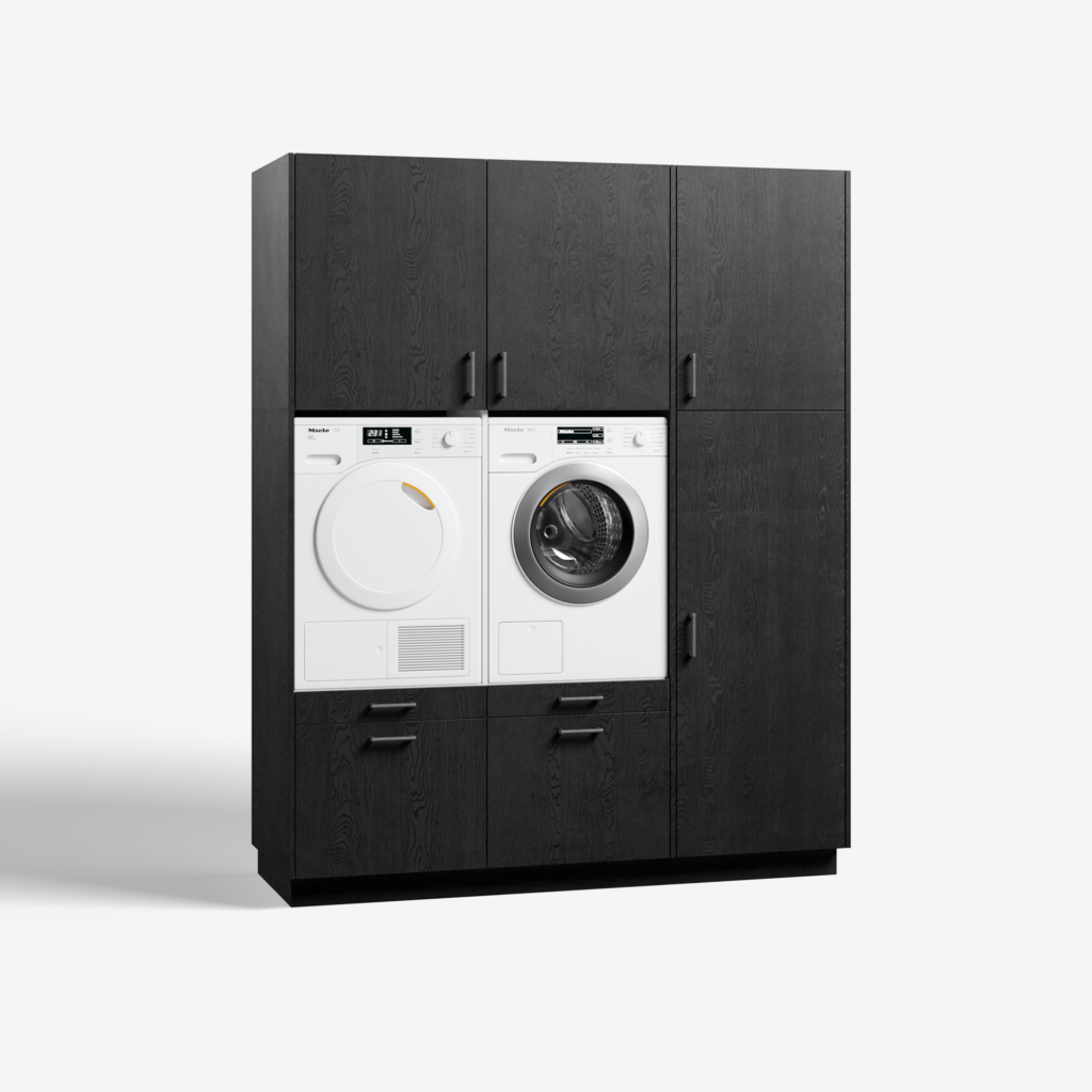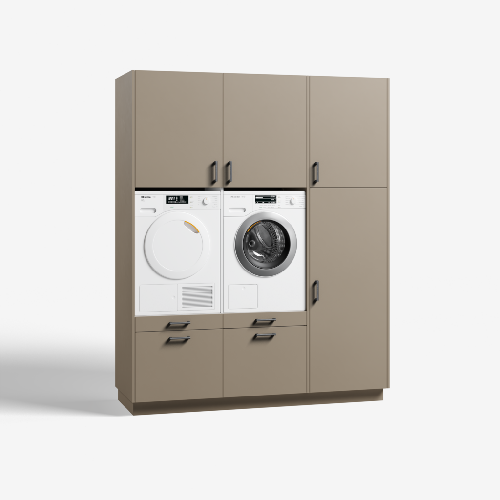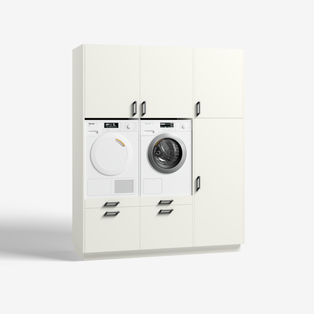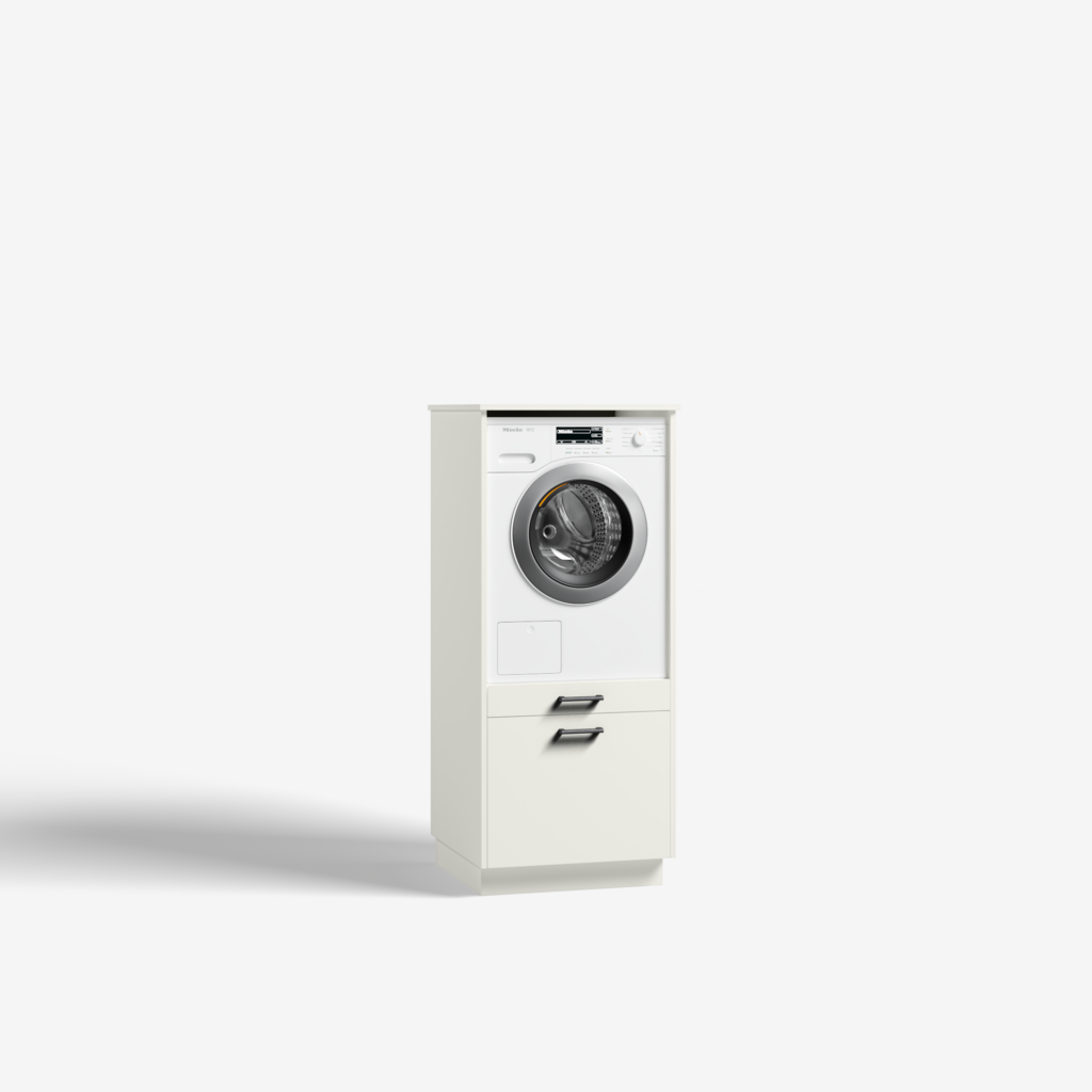 Two Pair is een winnaar in wasgemak. Twee machines opgeruimd naast elkaar, op een perfecte en ergonomische hoogte om te vullen en leeg te halen. Dat gemak wordt nog eens vergroot met uitschuifbare plateaus recht onder beide apparaten waarop jij jouw wasmand gemakkelijk kwijt kunt. In de lades daaronder kun je al je wasgerei kwijt, als wasmiddel, wasverzachter, waszakjes, strijkijzer, wat jij maar wilt. De lades zijn volledig uittrekbaar en lopen over geruisloze soft close scharnieren, zodat jij optimaal gebruik kunt maken van de beschikbare ruimte met een luxe touch. Kies een van de kleuren bij jouw interieur, je favoriete handgreep en jouw wasruimte is strak en netjes ingericht. Het compacte design past prima in kleinere wasruimtes, bijkeukens en zelfs onder het schuine dak van zolder. Ventilatieroosters in het bovenblad voeren eventuele warmte af en de antislipvloer van de kastruimtes zorgen ervoor dat je wasautomaat en droger stil en stevig staan. Met de stelpoten staat jouw Two Pair wasmachinekast op elke plek waterpas. En achter de lage plint zijn snoeren en aansluitingen mooi uit zicht gebracht. Wasmachinekast.nl biedt op elke wasmachinekast, standaardmodel of maatwerk, vijf jaar volledige garantie. Ook voor de Two Pair is de robuuste kwaliteit gegarandeerd. Kies jij voor zelf monteren, dan wordt je wasmachine meubel in praktische delen aan huis geleverd en zet je ‘m zelf eenvoudig in elkaar. Kies je voor ‘inclusief montage’ dan bezorgen wij jouw wasmeubel aan huis en monteren onze servicemedewerkers de kast op locatie, inclusief installatie van wasmachine en droger. Maximaal wasgemak! Two Pair is een van onze kleinere modellen, wil je liever een groter meubel? Klik hier!