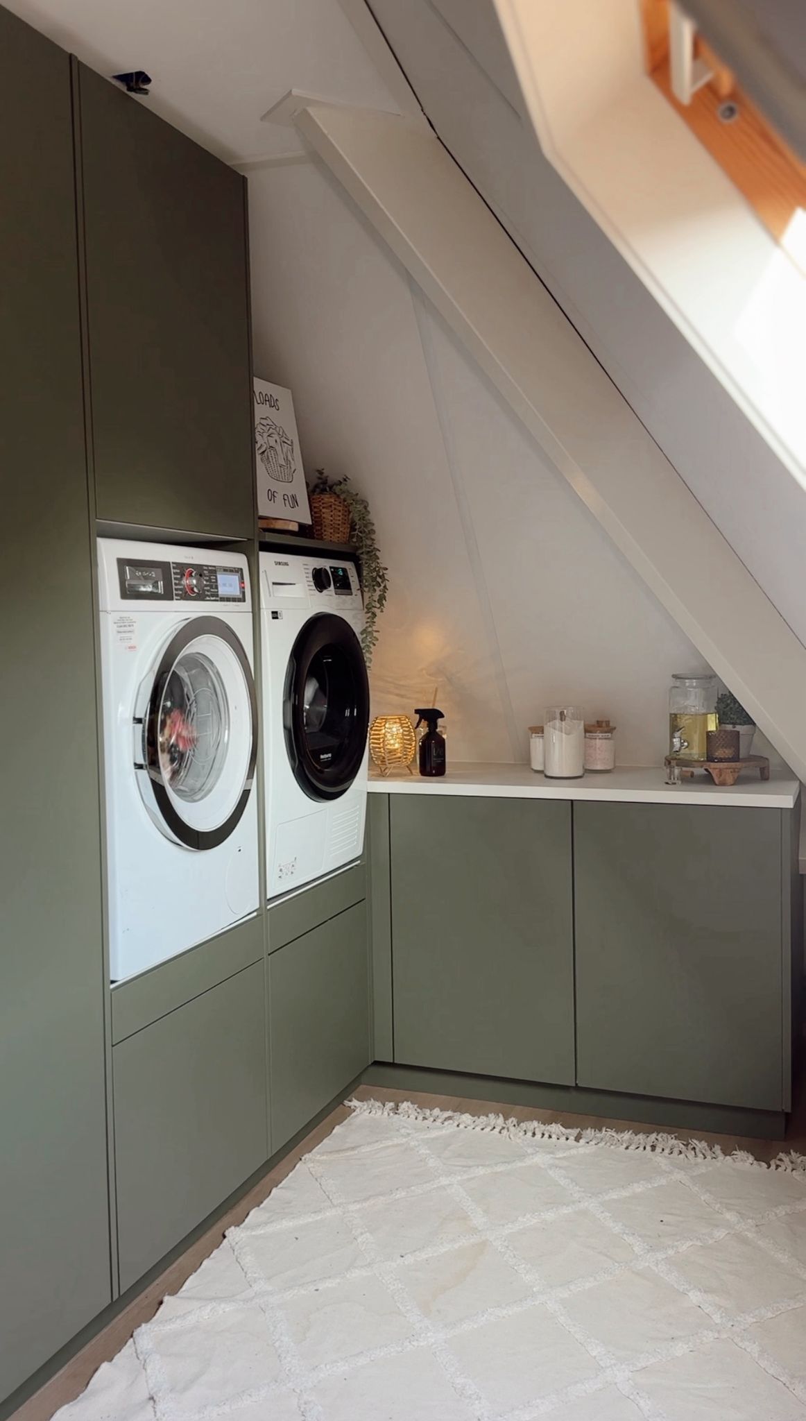 In een huishouden waar de was nooit ophoudt, is een praktische indeling geen luxe maar een must. Kelly liep tegen een bekende uitdaging aan: een lastige wasruimte met een schuin dak en veel was door een groot gezin.