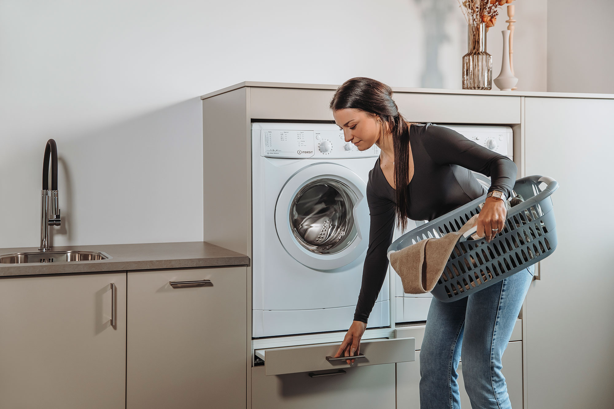 Door je wasmachine en droger boven elkaar te plaatsen, creëer je een efficiënte indeling. Alles wat je nodig hebt voor het wassen en drogen is gemakkelijk bereikbaar en bevindt zich binnen handbereik. Zonder al te veel sjouwen en bukken. Met een uitschuifbaar plateau tussen beide wasapparaten heb je ook nog een praktisch afzet voor bijvoorbeeld je wasmand.