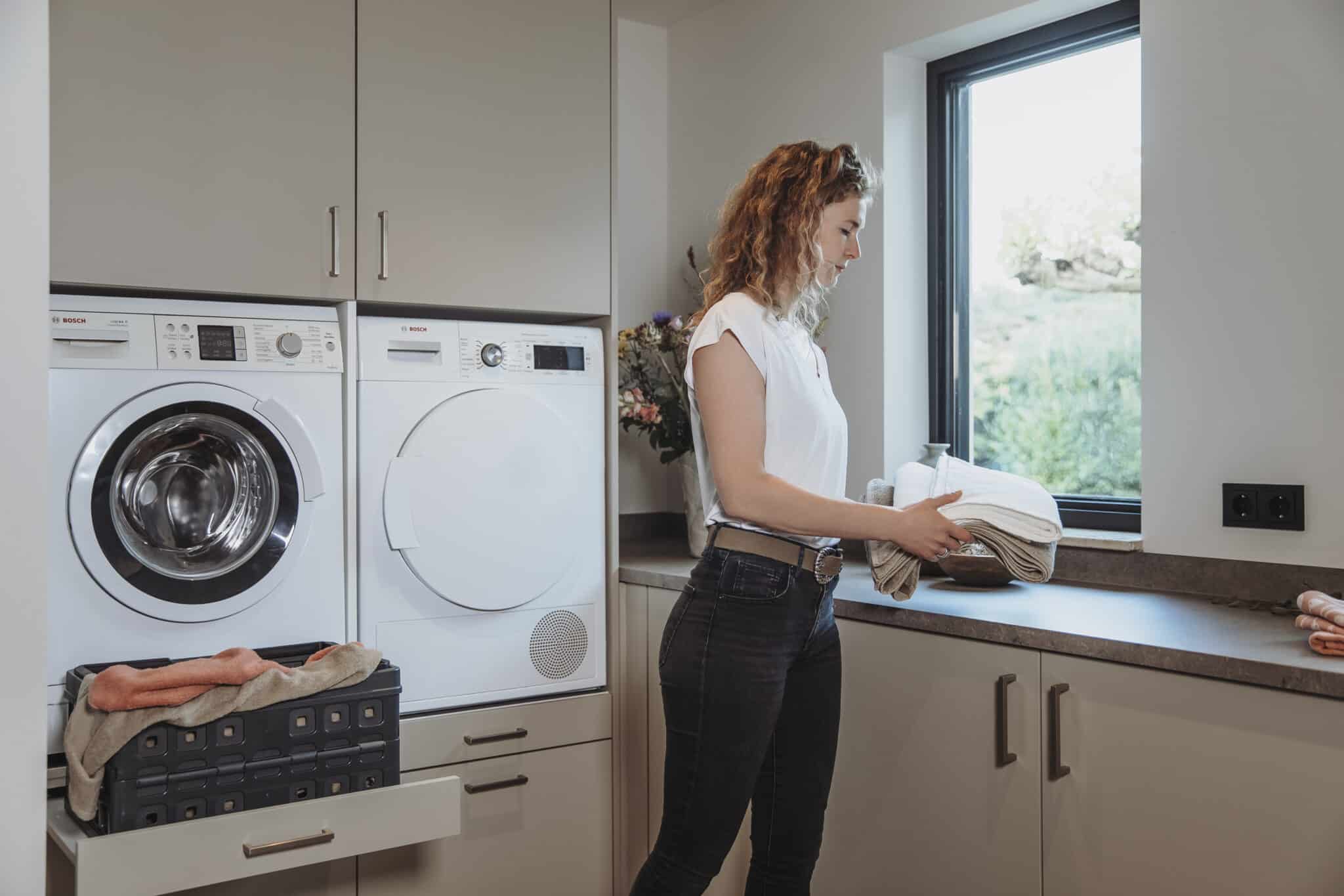 Uw wasmachine, droger en alle snoeren uit het zicht